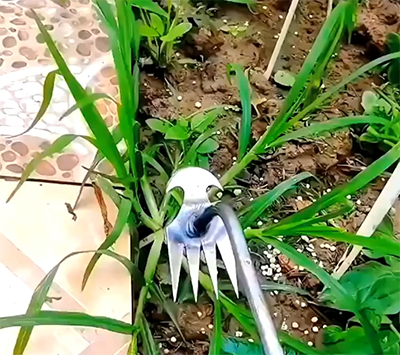 Ефективна прополка: Інструмент дозволяє легко видаляти бур'яни з кутів і вузьких місць. Просто вставте чотири гострі зубці в ґрунт якомога ближче до кореня трави і потягніть. Це також розпушує ґрунт для кращого насичення киснем.